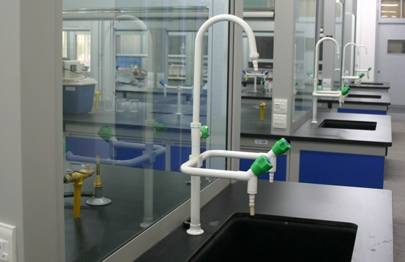 排水系统的管道应耐酸碱腐蚀及有机试剂对材质的融解,应采用PPR或其他材质,而不能用普通的PVC管材,同时也要根据污水的性质、流量、排放规律并结合室外排水条件而定方案。由于大型实验室下水管道复杂,应采取必要措施避免管道堵塞渗漏,如养成良好的用水习惯、放置滤网、设置存水弯、弯头采用45°角连接等。集中供水系统由于成本较高,水质不稳定,因此不推荐使用。为了避免二次污染,可采用感应式水龙头,缺点是容易坏。为了美观,热水器可采用内置式的即热式电热水器。