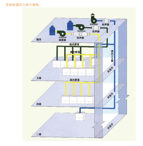 实验室的通风不仅仅是在局部的几个设备上装入排风系统就可以达到安全舒适的环境效果,房间内的整体大环境才是最终控制的目标。因此必须将空调、新风、设备排风、房间排风、室外的风机排放及处理相结合,综合控制才能创造理想的室内环境。