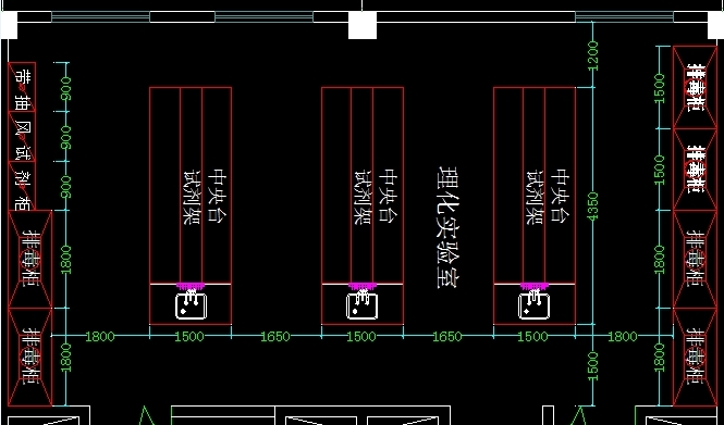 分析化学实验室配置实验设备:实验室边台、中央台(水槽、试剂架)、通风柜、药品柜、器皿柜、回流冷凝装置(小水杯及水拷克)、抽滤装置(抽滤水龙头、小水杯槽)。